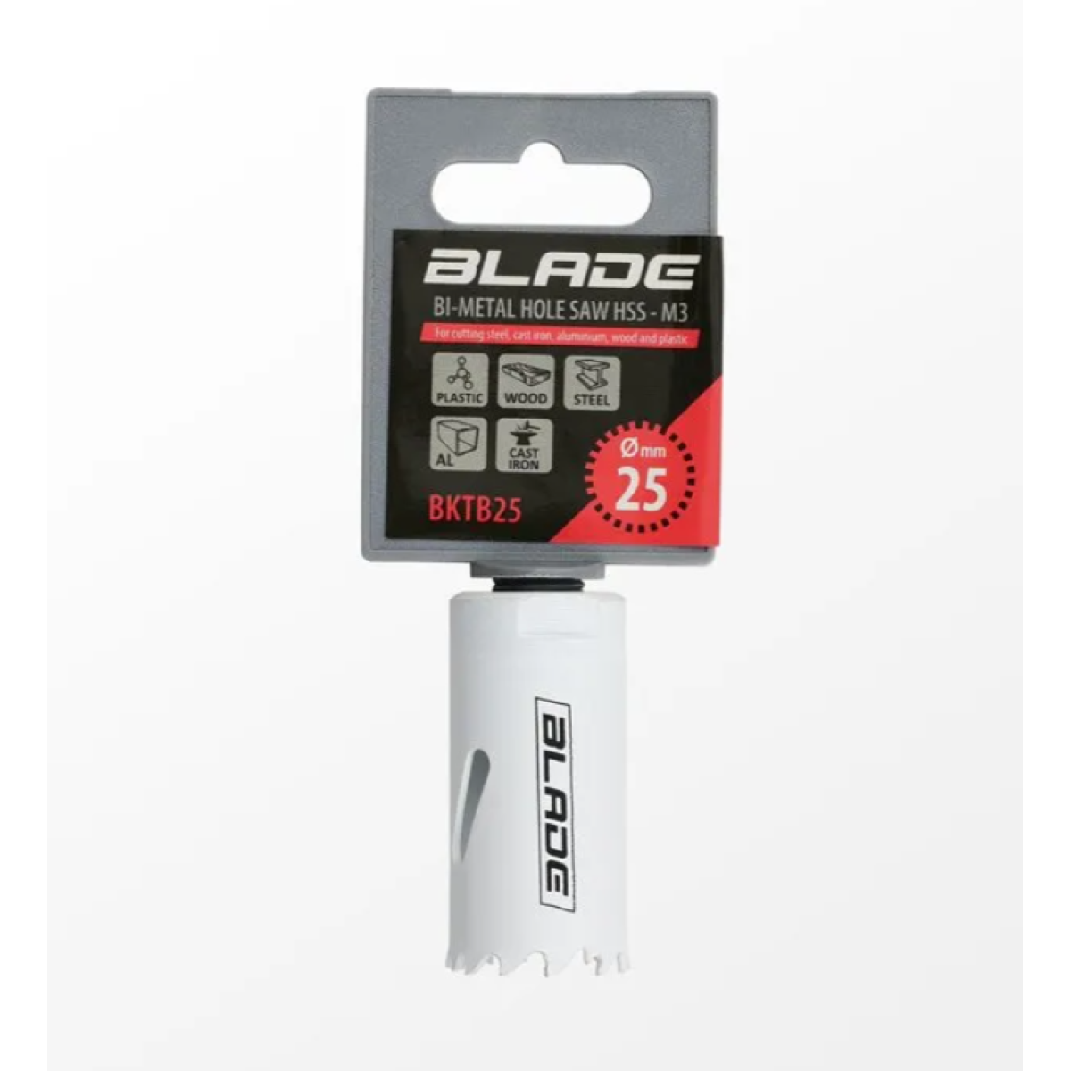 Bimetalne HSS-M3 zavarene ivice. Vrhovi zuba kaljeni (ojačani) za sečenje bilo kakvog uobičajenog materijala sa visokom otpornošću na habanje. Testera za rupe je odvojena od adaptera (dva dela), tako da se testere za rupe različitog prečnika mogu brže zameniti i montirati na isti prihvatnik. Prvenstveno se koristi za bušenje rupa u čeliku, livenom gvožđu, aluminijumu, drvetu i plastici.
