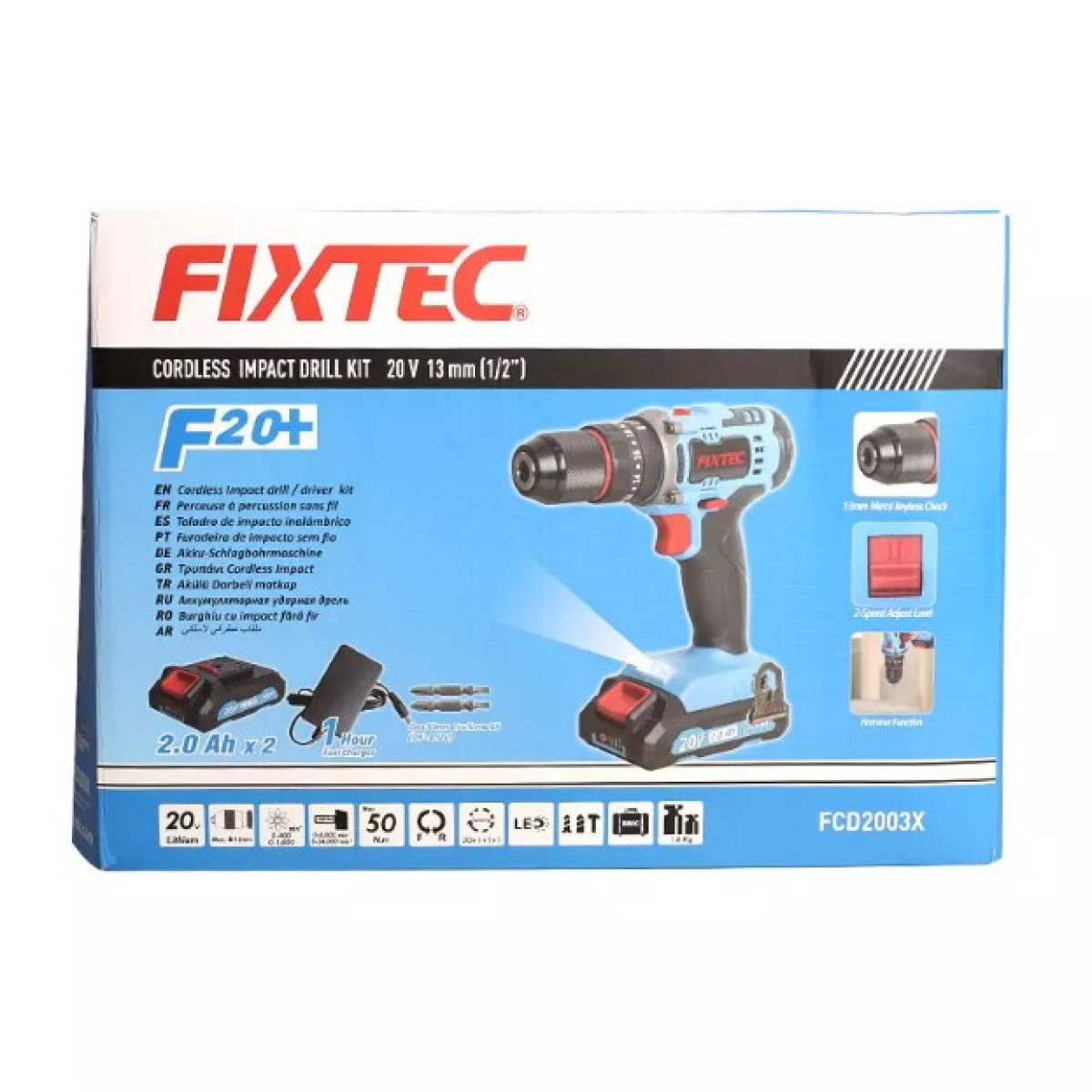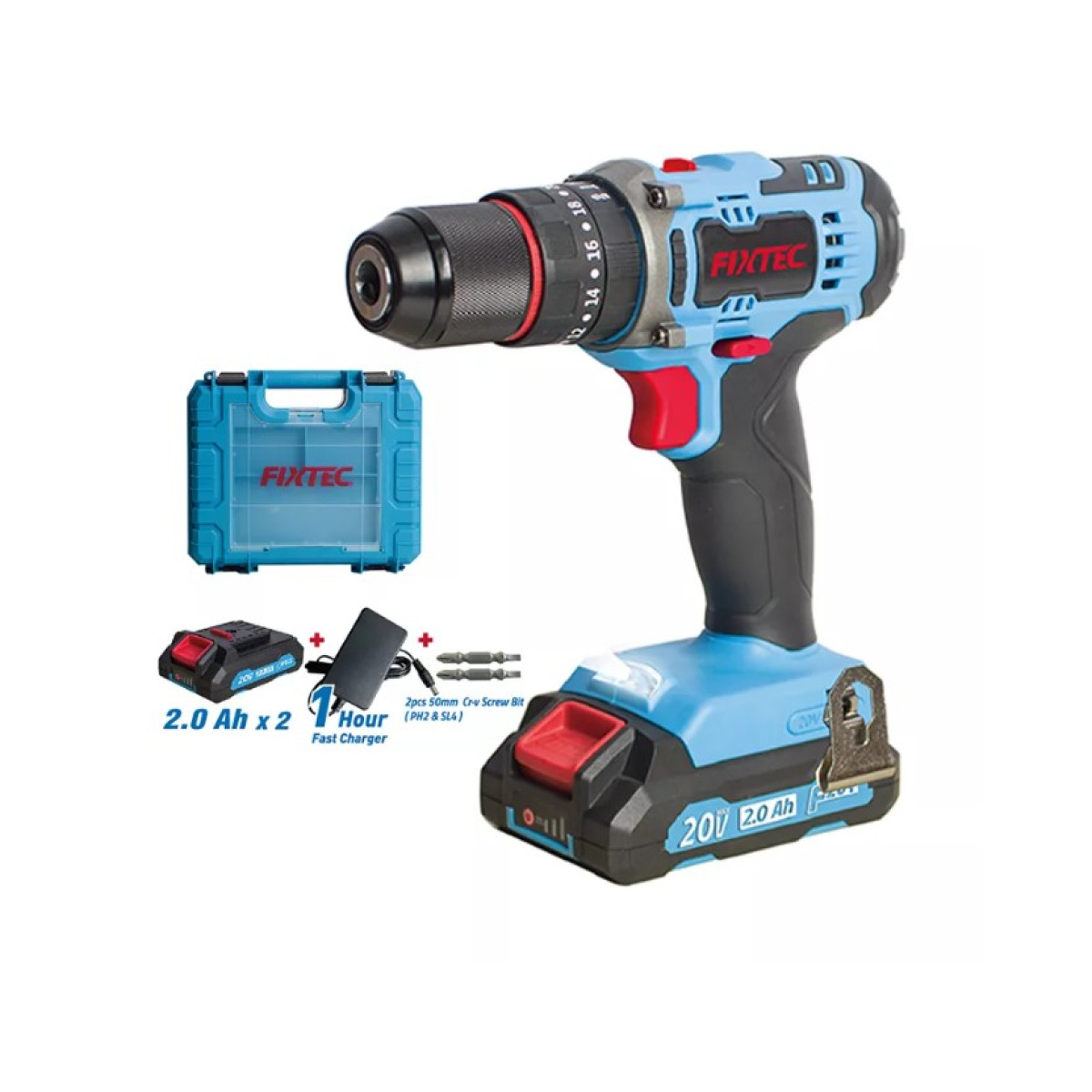 FIXTEC Aku udarna bušilica sa dve baterije 2Ah i koferom
