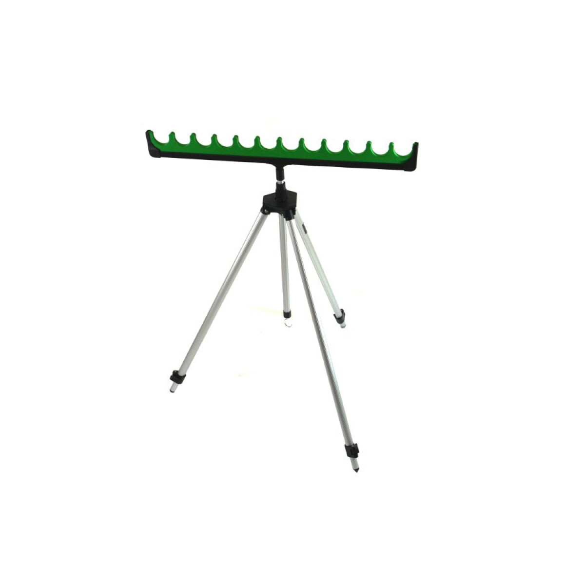 Enter držač za štapove-tripod, čvrst, stabilan izrađen od aluminijuma sa podesivim (teleskopskim) nogicama sa dve sekcije. Maksimalna visina je 154 cm. Nosač štapova je izrađen od eva materijala sa 12 pozicija za štap.